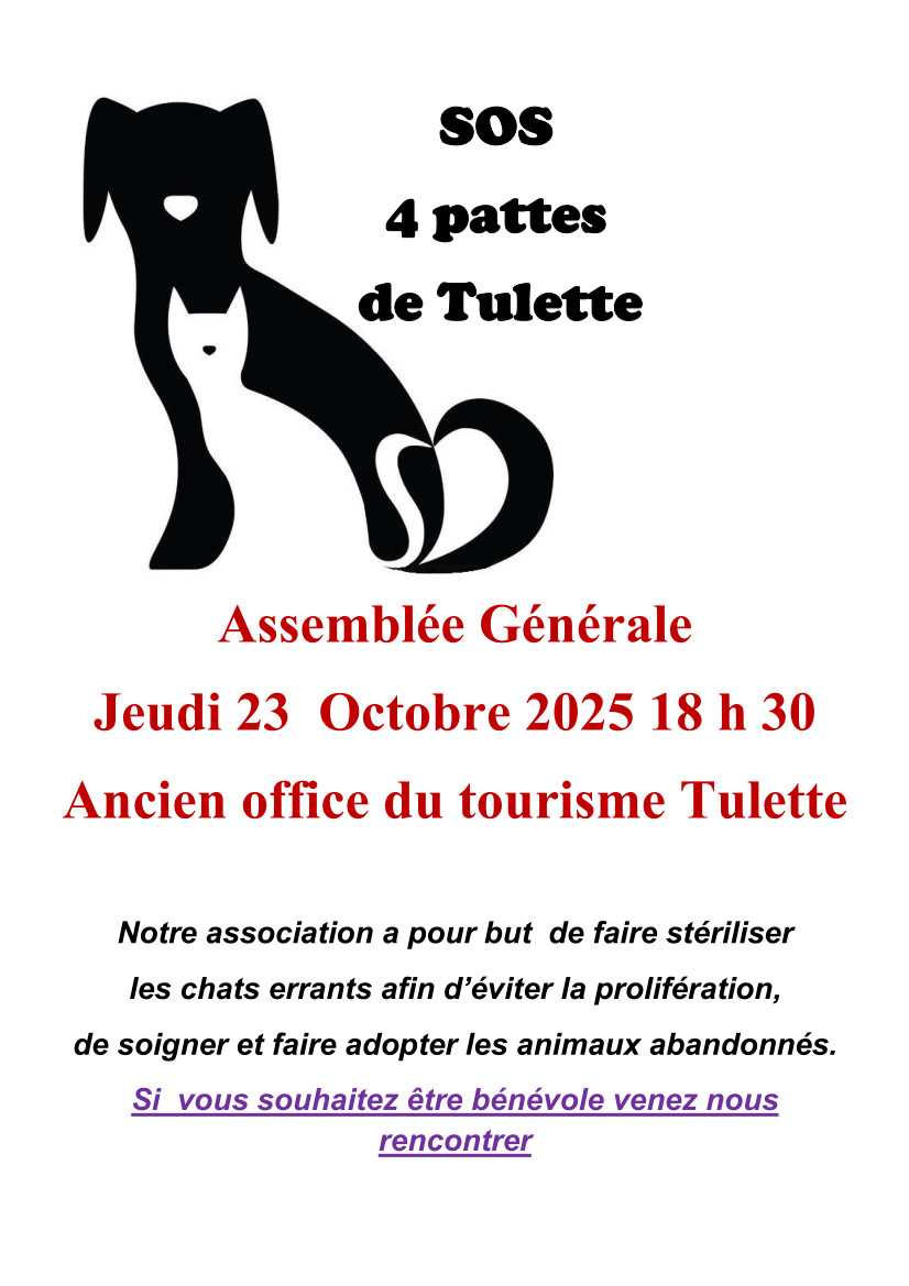 Vous êtes ici : Accueil > Assemblée générale association SOS 4 PATTES