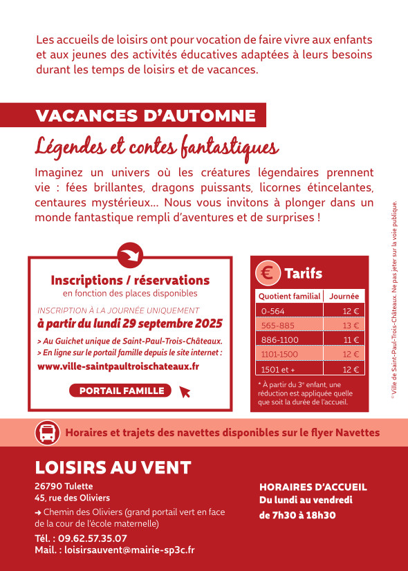 Centre de Loisirs : inscriptions ouvertes pour les vacances de la TOUSSAINT