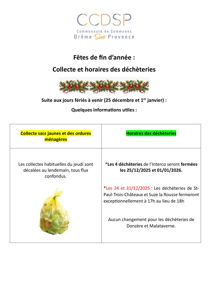 Vous êtes ici : Accueil > Décalage des collectes pendant les jours fériés fête de fin d'année