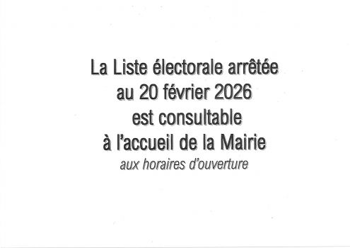 Vous êtes ici : Accueil > Consultation de la liste électorale arrêtée au 20 février 2026