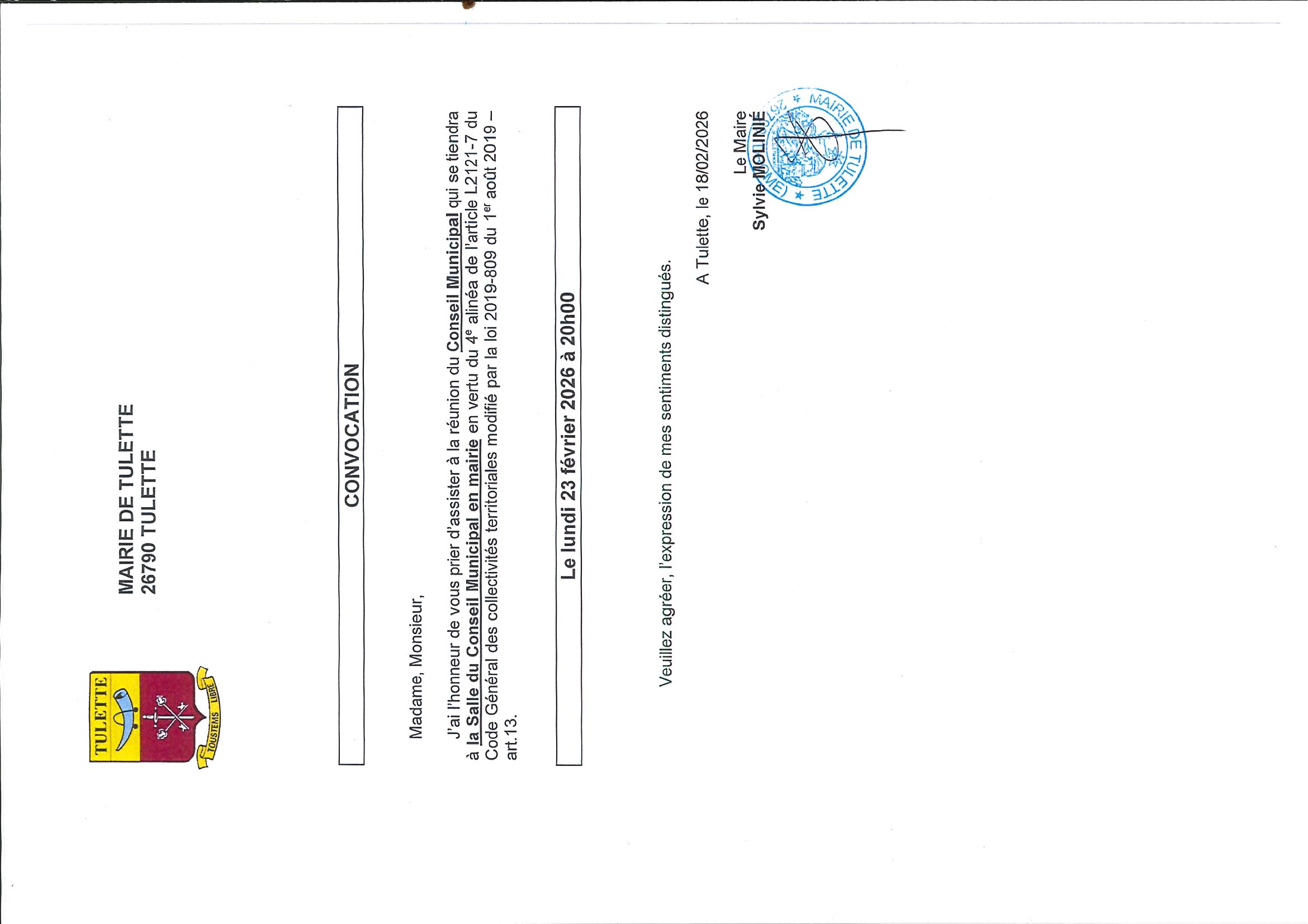 Vous êtes ici : Accueil > Convocation conseil municipal 230226
