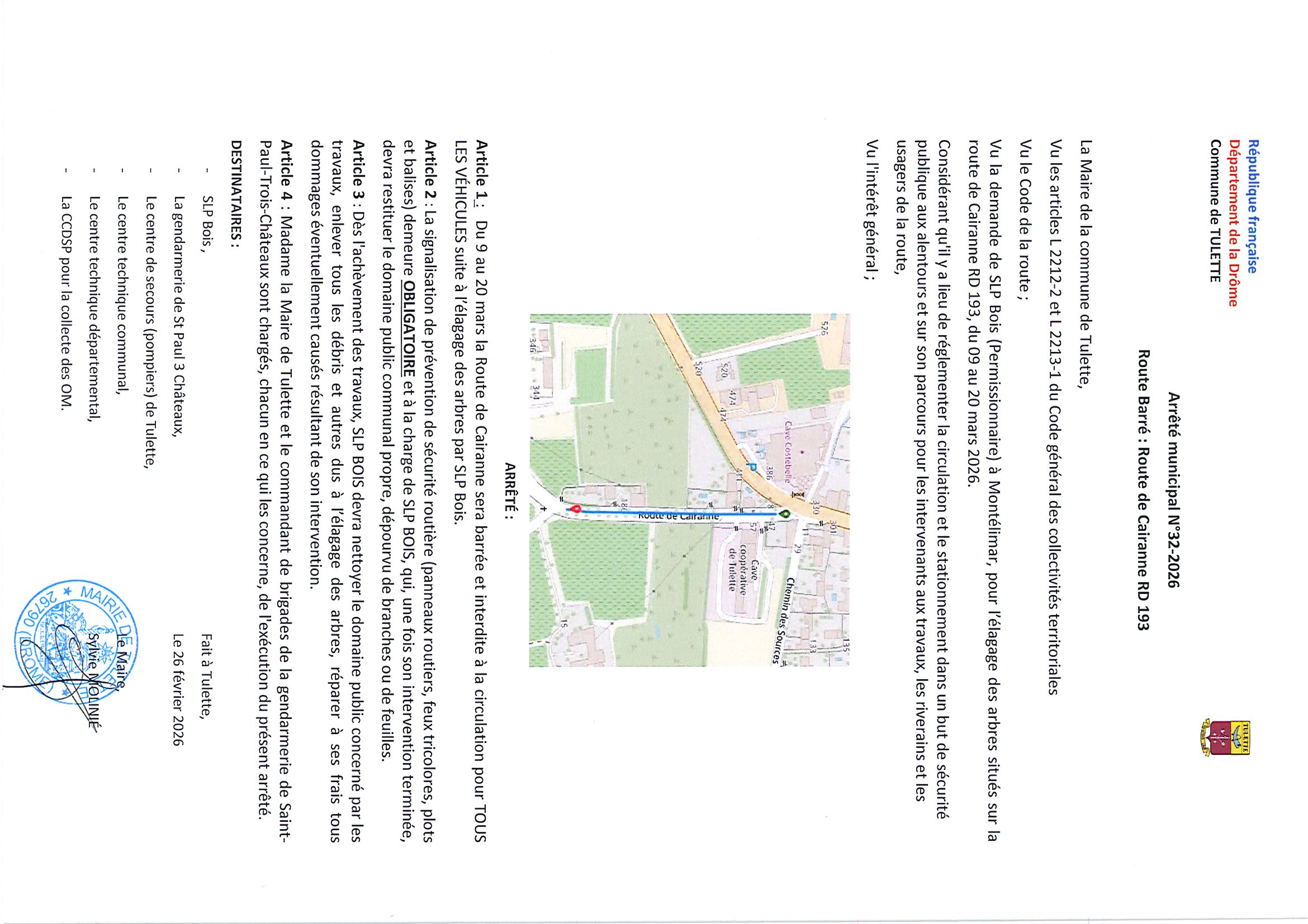 Vous êtes ici : Accueil > Route de Cairanne (RD193) barrée du 9 au 20 mars 2026